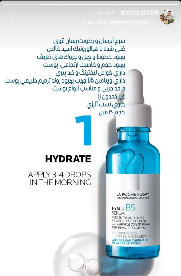 سرم 30 میلی لیتری La Roche Posay Hyalu B5 در غلظت های بهینه با در نظر گرفتن تحمل پوست حساس تولید می شود. با فرمول حاوی دو نوع هیالورونیک اسید، ویتامین B5 و madecassoside، به ایجاد ظاهری چاق و چاق برای پوست و ترمیم سد پوستی کمک می کند. به پوست کمک می کند ظاهری سفت، چاق، سالم و شاداب پیدا کند. ضد پیری و مرطوب کنندگی موثر است. این در یک فرمول ژل مبتنی بر آب است. برای انواع پوست موجود است. طریقه مصرف: صبح و شب روی پوست صورت و گردن استفاده شود.